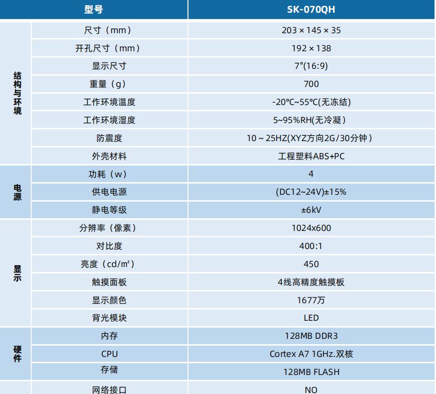 SK-070QH 顯控人機(jī)界面 顯控觸摸屏